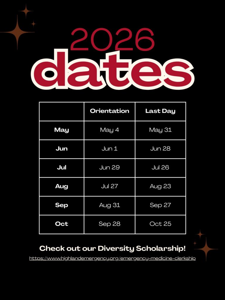 - Attend weekly residency conference along with Highland EM residents & faculty